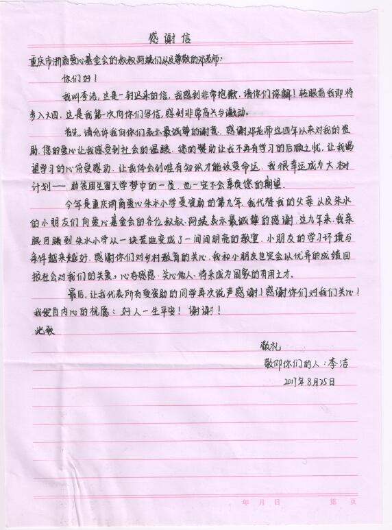 大学生感谢信