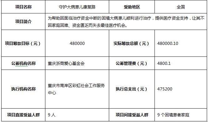 重庆浙商爱心基金会《守护大病患儿康复路》项目结项报告