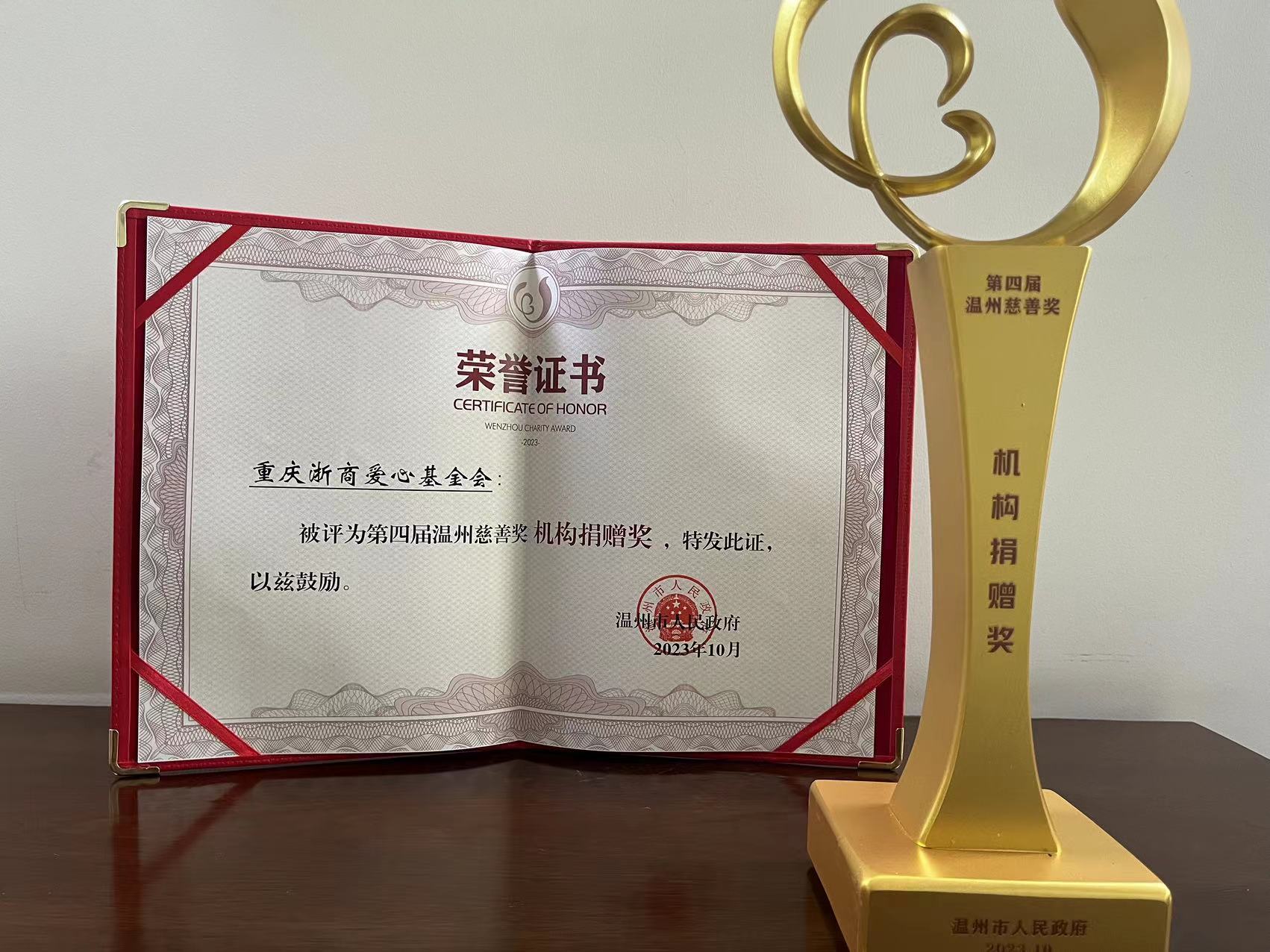 “温州慈善奖——机构捐赠奖”