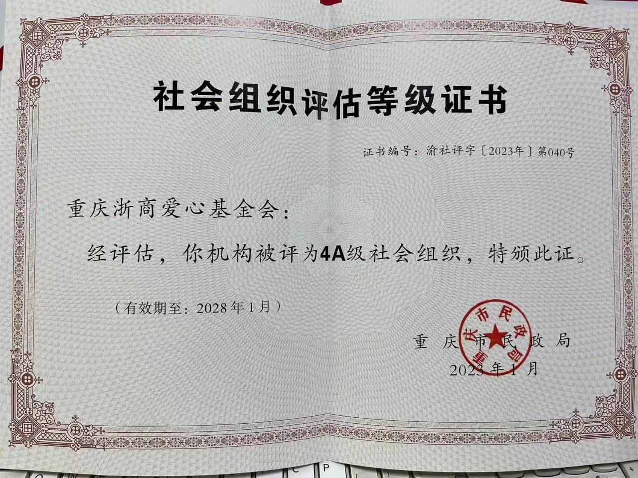 等荣誉,2023年被重庆市民政局评为4A级社会组织。基金会现为重庆市慈善联合总会的理事会单位,为中华慈善联合会的会员单位。
