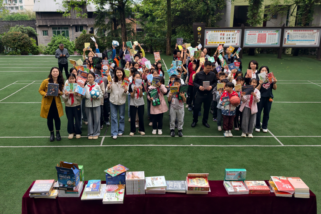 在捐赠交接环节,重庆国誉商贸有限公司代表向学校捐赠授牌,并现场发放了精心挑选的优质图书及文体用品。捐赠书籍涵盖经典文学、科普读物、传统文化等多个类别,文体用品包括体育器材等,切实丰富了孩子们的阅读资源,改善了学习条件。