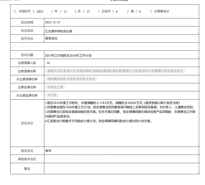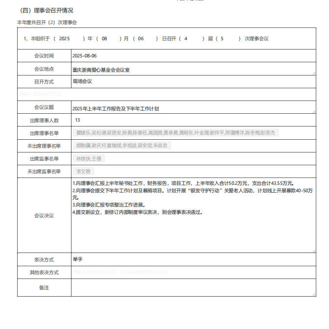 重庆浙商爱心基金会2025年度报告——理事会次数页