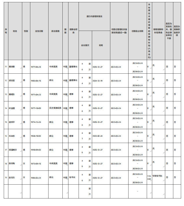 重庆浙商爱心基金会2025年度报告——理事会成员及受薪情况表